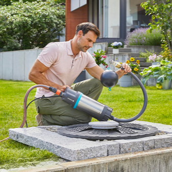 - Ponorné plovákové čerpadlo: Čerpadlo funguje na základě plováku, který detekuje hladinu vody. Čerpadlo se zapíná pouze tehdy, když je dostatečné množství vody, což minimalizuje riziko chodu nasucho. Čerpadlo se spíná nejen na základě dostatku vody ale také podle ne/připojení do elektrické sítě. Nejoblíbenějším čerpadlem z naší nabídky tohoto typu je GARDENA 4700/2 simple.