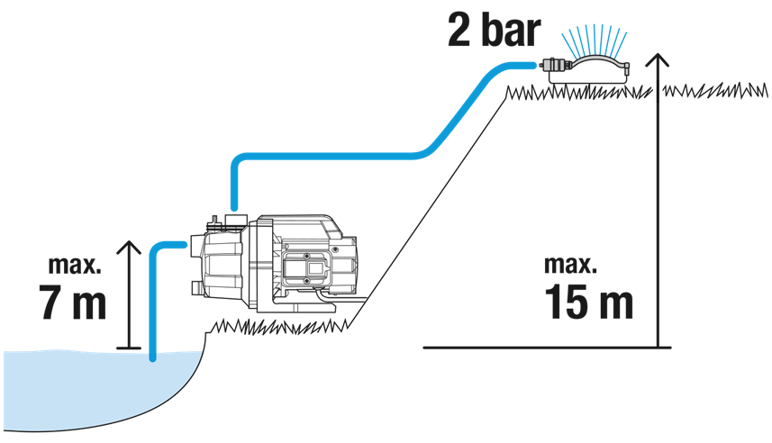 - Sací hloubka: Tento parametr označuje maximální hloubku, ze které čerpadlo dokáže nasávat vodu. Je klíčový pro čerpání vody z hlubokých studní nebo nádrží. Zatímco zahradní čerpadla se sací hadicí mohou čerpat vodu z 8 metrové hloubce, tak ponorná čerpadla jsou limitována maximální hloubkou, do které mohou být ponořeny, což je u běžných čerpadel přibližně 10 metrů, avšak čerpadla pro vrtané studny je možné ponořit i několik desítek metrů hluboko.