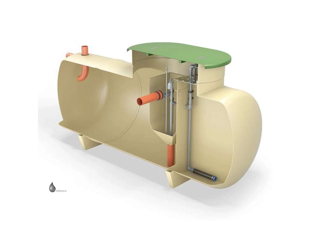 Vyčištěná kapalina protéká gravitačně do další komory, ve které je umístěno vysoce výkonné plovákové čerpadlo. Po dosažení určité hladiny odčerpá kapalinu pod tlakem.
