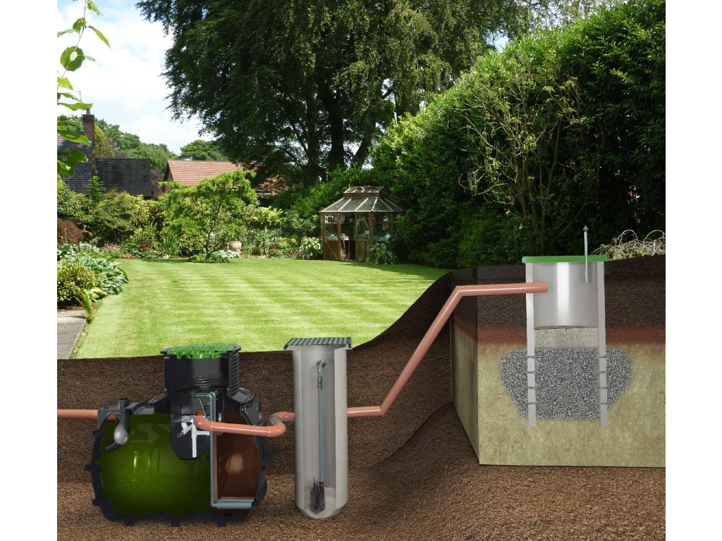 - Integrované čerpadlo (IPS) - instaluje se v případě potřeby přečerpávat vodu do vyšší polohy nebo do vzdálené kanalizace, toku či vsaku