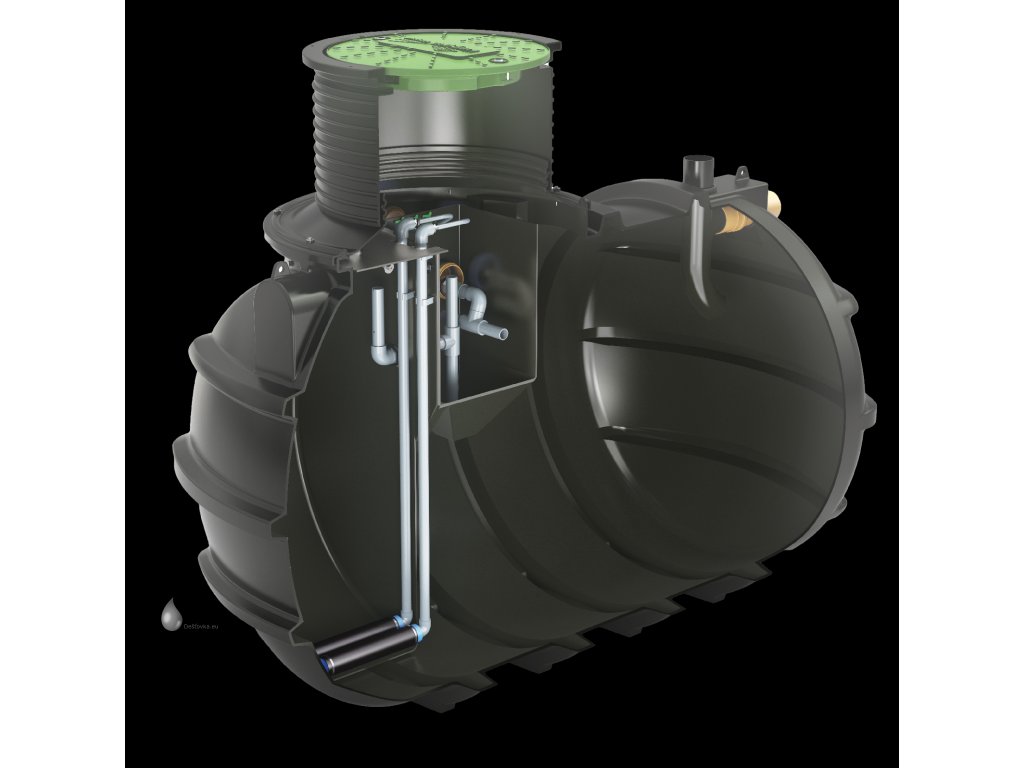 proces čištění s dvojitým kyslíkovým bioreaktorem zajišťuje vysokou účinnost i při nepravidelném přítoku odpadní vody. Volitelně lze použít integrovanou čerpací stanici odpadních vod.