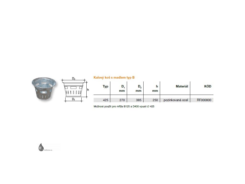 Kalový koš pro zachytávání nečistot pro mříže Wavin Tegra 425 a 600. Vložitelné do teleskopické roury v případě Tegra 425 a do betonového adaptéru v případě Tegra 600.
