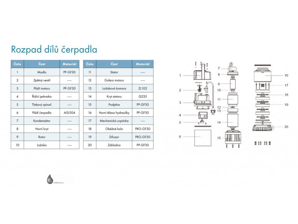 - Tělo čerpadla vyrobeno z nerezové oceli AISI 304