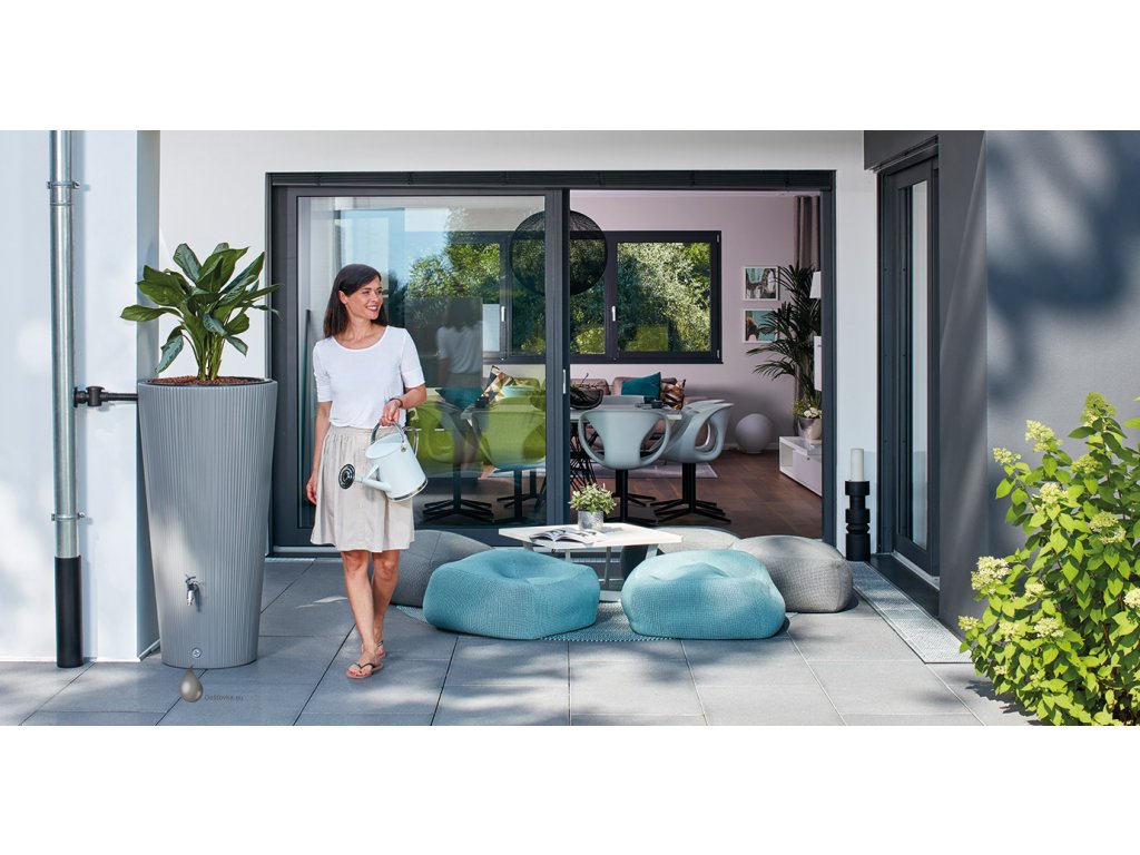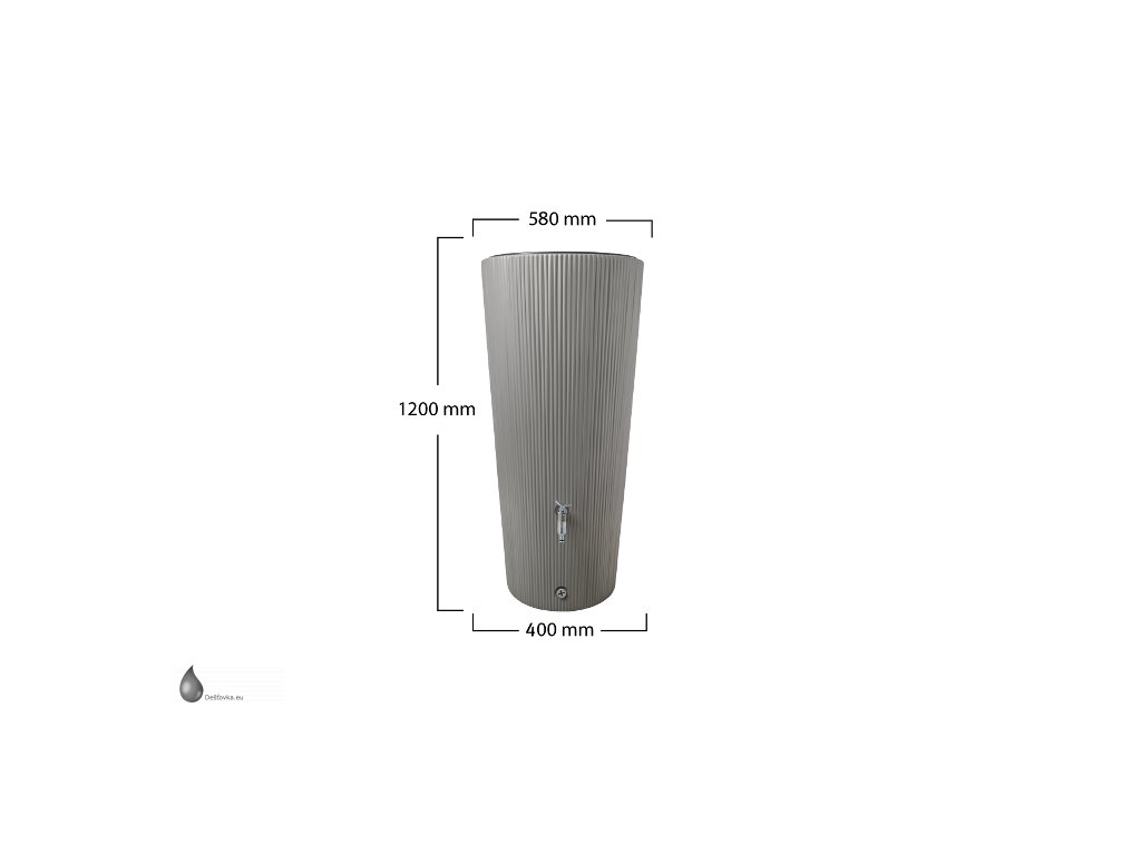 Nadzemní nádrž slouží kromě sběru dešťové vody i jako dekorace venkovních prostor. Moderní design v moderních pastelových barvách a atraktivní vlnitou povrchvou strukturou. V horní části nádrže je intergrovaný vyjímatelný květináč pro individuální design, tento květináč je opatřen filtrem, díky kterému do nádrže nepadají nečistoty z květináče. Součástí nádrže je závitová přípojka (3/4 ") pro montáž kohoutu (kohout není součástí nádrže) a zároveň otvor pro vypouštění vody pomocí univerzální zahradní hadice. Dešťová voda je sbírána z okapu do nádrže pomocí sběrače, který je s nádrží kompatibilní (nutno objednat zvlášť, není součástí nádrže).