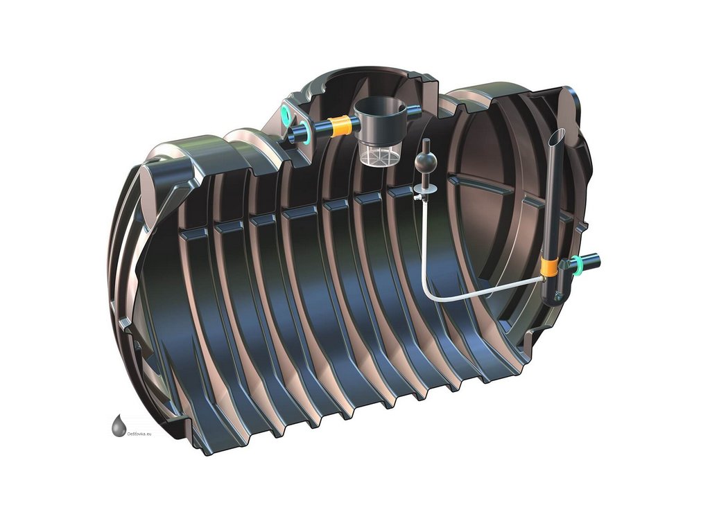 Samonosná retenční nádrž na dešťovou vodu o objemu 12500 l (12,5 m3), který je rozdělen na retenční (voda se zadrží a odteče regulovaným odtokem) a akumulační část (voda se zadrží např. pro zálivku nebo splachování). Více variant. Nádrž vč. regulovaného odtoku, poklopu, filtračního koše, bezpečnostního přepadu (sifonu) a těsnění. Certifikace dle EN ISO 9001. Tato nádrž je vyrobena metodou rotačního tváření plastů, nádrž je z jednoho kusu, 100 % vodotěsná a bezešvá. Žádné lepení ani svařování. Záruka na naše výrobky je 25 let, životnost nádrže je neomezena. Samonosné jímky se usazují do vykopané jámy a zasypávají pískem, štěrkopískem nebo štěrkem (vždy dle montážního návodu). Není potřeba betonovat.