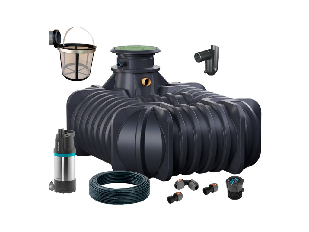 Sestava produktů, která plně postačuje pro zprovoznění systému využití dešťové vody pro zálivku zahrady. Optimalizované zařízení pro využití dešťové vody na zahradě rodinných domů.