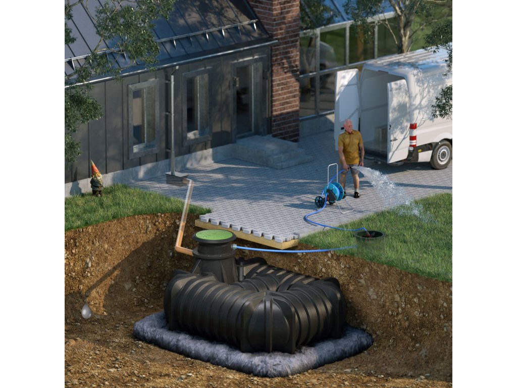 - Samonosná jímka RAINSTORE flat o objemu 5000 litrů (5,0 m3) vč. plastového poklopu se zatížením do 1,5 tuny