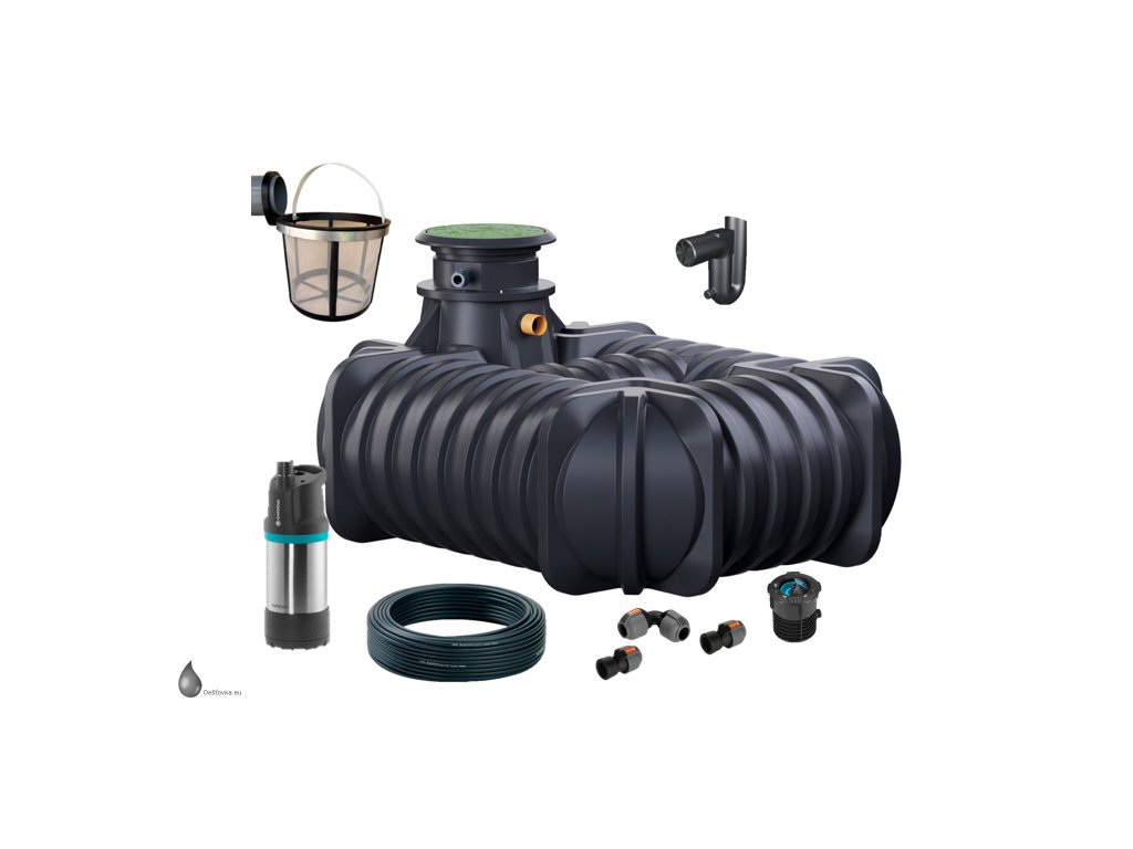 Sestava produktů, která plně postačuje pro zprovoznění systému využití dešťové vody pro zálivku zahrady. Optimalizované zařízení pro využití dešťové vody na zahradě rodinných domů.