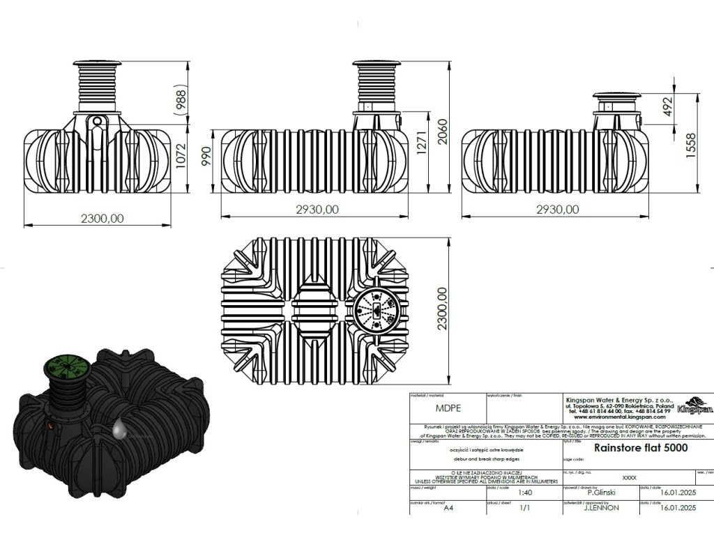 - Samonosná jímka RAINSTORE flat o objemu 5000 litrů (5,0 m3) vč. plastového poklopu se zatížením do 1,5 tuny