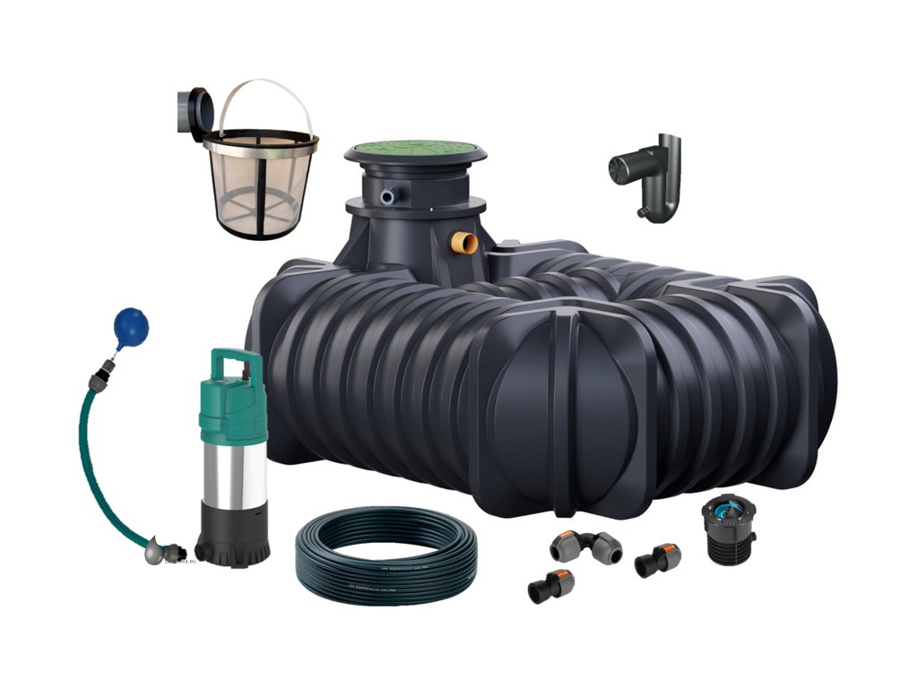 Sestava produktů, která plně postačuje pro zprovoznění systému využití dešťové vody pro zálivku zahrady. Optimalizované zařízení pro využití dešťové vody na zahradě rodinných domů.