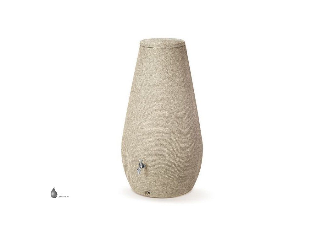 Moderní nádrž na dešťovou vodu s kapacitou 410 litrů, která spojuje funkčnost s estetikou. Má tvar kapky a je vyrobena z kvalitního plastu, který je odolný vůči povětrnostním vlivům. V horní části se nachází otvor s víkem, který usnadňuje plnění a čištění. Dále jsou připraveny otvory pro kohoutek nebo spojku na hadici a pro kompletní vypuštění nádrže.