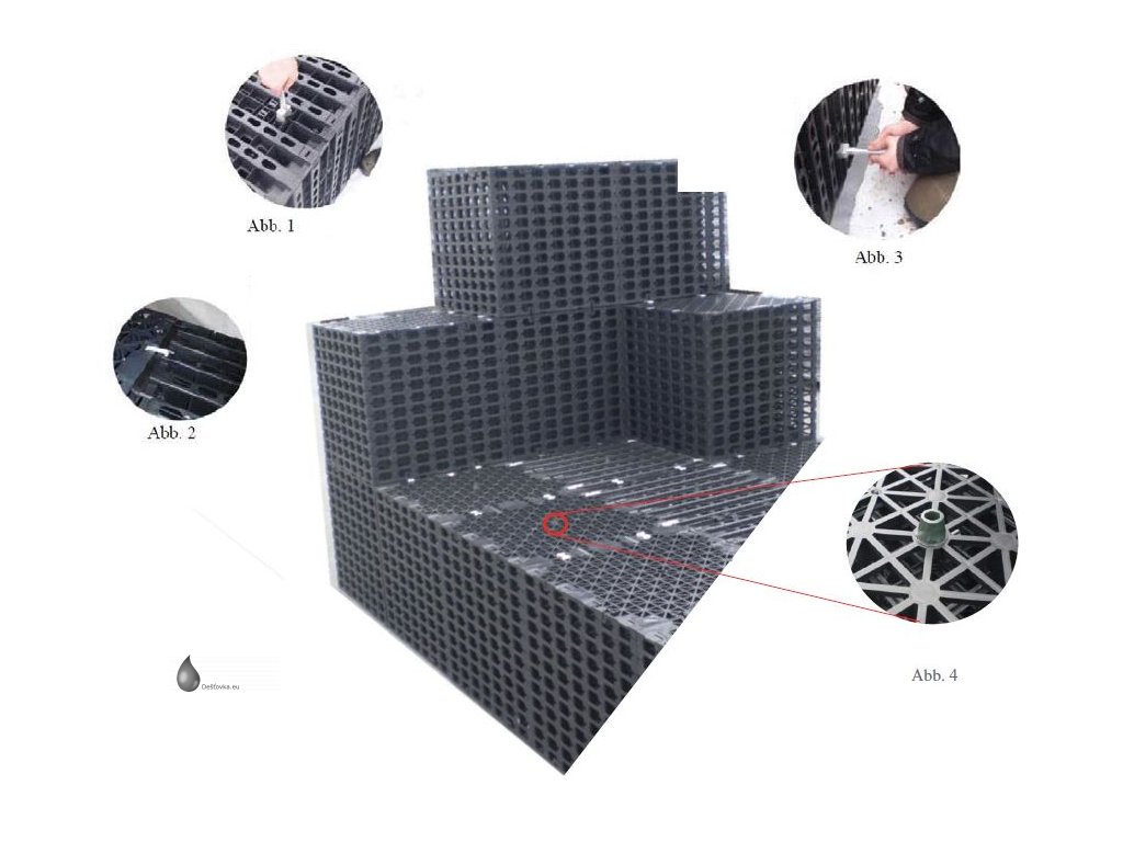 Unikátnost systému spočívá ve výškově modifikovaných blocích, standardní výšky v rozmezí od 10 do 80 cm s přírůstky po 5 cm. Dále systém umožňuje kontrolu a čištění prostřednictvím kontrolních čistících kanálů. Zde nabízíme ve výšce 60 cm.