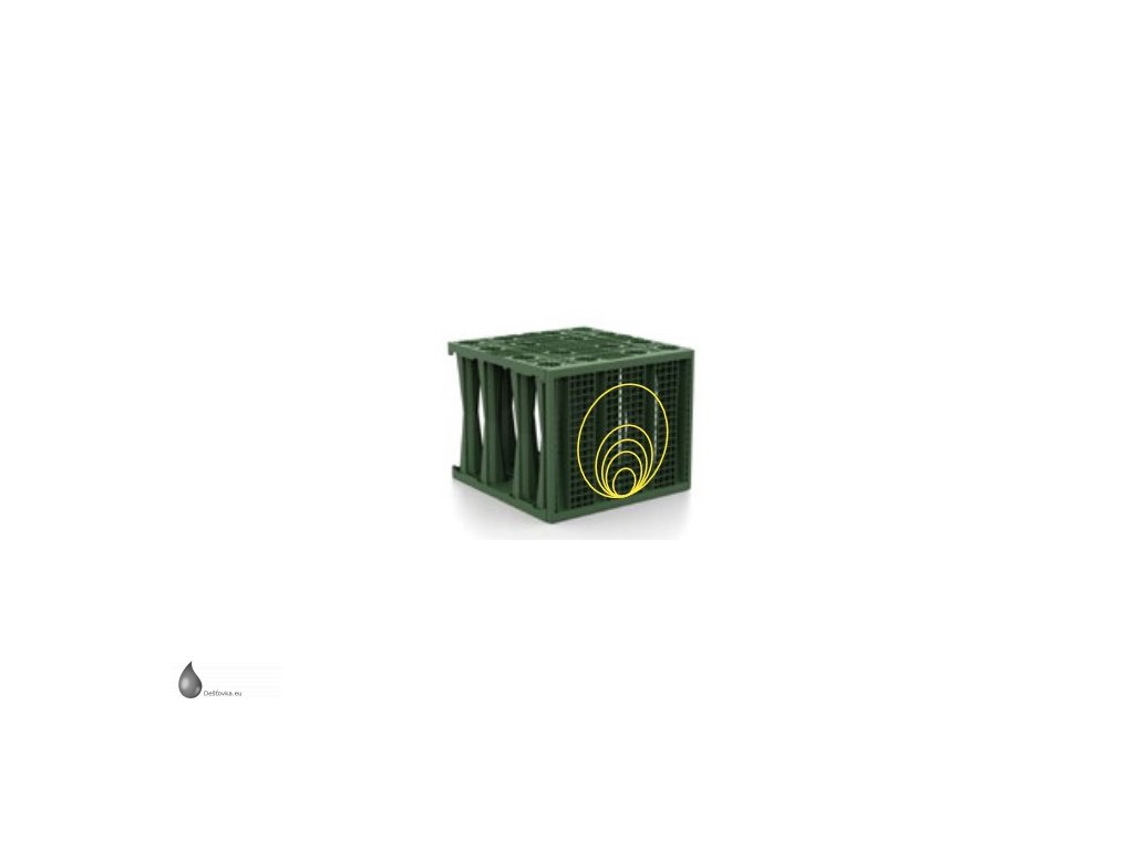 Sada vsakovacích boxů Rigofill ST-S – akumulační objem 4872 l (4,872 m3), včetně bočních mřížek, geotextilie a spojovacích prvků. Rigofill ST jsou plastové bloky určené k zabudování pod zem pro shromažďování a vytvoření zásoby vody. Galerie dočasně zachytí dešťovou vodu a s časovým zpožděním ji opět odvádějí dále. Vedle vsakovacích průlehů a trubních galerií se dnes často používají podzemní vsakovací/retenční objekty.